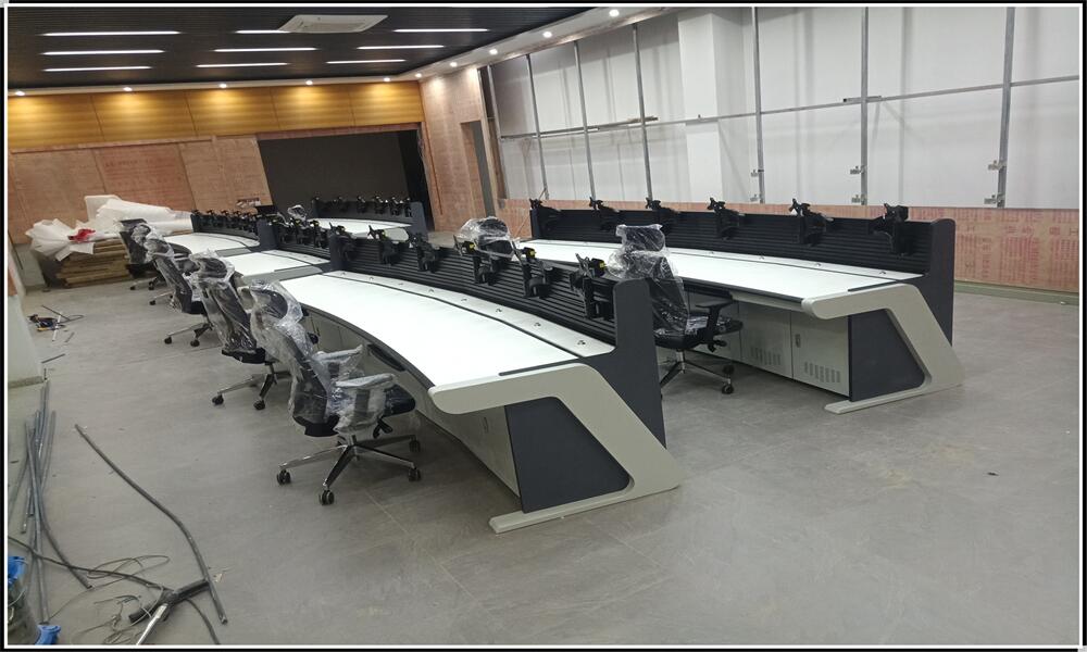 5. Back wall: The back wall of the main control desk is assembled in a combination of sheet metal and aluminum profiles. The back wall is fixed to the rear beam through sheet metal parts, and a display can be hung on the aluminum profile