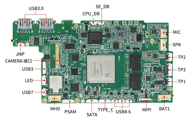 飞腾腾珑E2000Q四核CPU处理器,主频2.0GHz,功耗11W