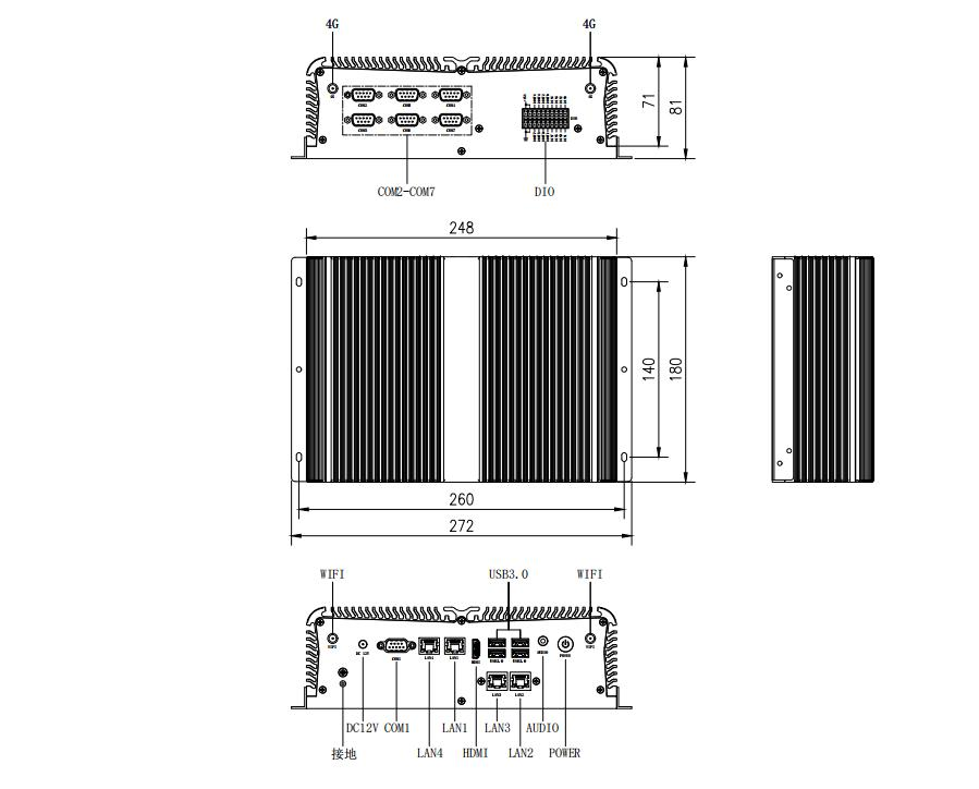 无风扇箱体电脑, Intel® i5-6300U CPU, 2*LAN,+2LAN扩展,4*USB3.0, 7*COM, 16位DIO, 1*HDMI, 1*Audio, 1*2.5" 硬盘驱动架, DC 12V