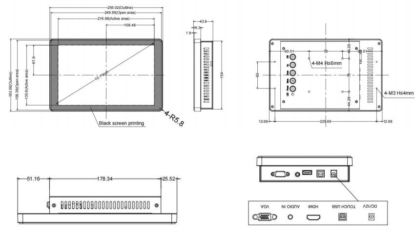| 盖板玻璃 | 3mm黑色丝印, 物理钢化,可选AG/AR 表面处理 | |