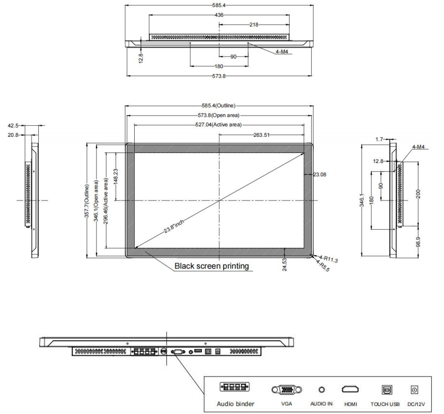 | 盖板玻璃 | 3mm黑色丝印, 物理钢化,可选AG/AR 表面处理 | |