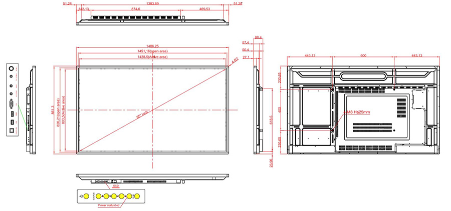 | 壁挂形式 | VESA,MIS-F,600x400 mm,Y,8,90 | |