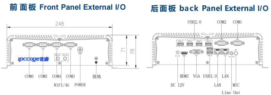 | 串口 | 6* RS232 /COM2 * RS232/RS/RS485 | |
