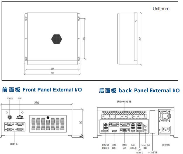 | 机箱尺寸 | 长 x 宽 x 高 | 276mm*257mm*90mm |
